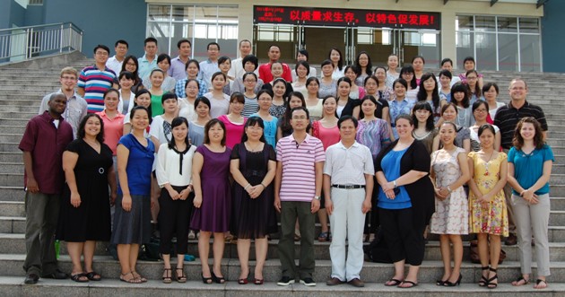 我校从建校以来一直以“以质量求生存,以特色促发展”作为办学理念,在这一理念的指导下,外语系系领导积极转变思想,加强教育国际交流合作,特别是在探索外籍英语师资引进和管理模式,取得了一定的成效,推动了学院教育国际交流合作的开展。外籍教师是学校教师队伍的重要组成部分,在学校教学科研,人才培养,学科建设中发挥着不可替代的作用。聘请外籍教师执教对促进新课程标准的实施, 对发挥示范性、实践教学、实训、实习都将起到积极的促进作用。学校广泛吸收外来文化,借鉴国际先进教学经验,为学校的发展注入了新的活力,对学生良好心理品质的形成,跨文化交流意识的启迪以及外语听说能力的培养都有积极的作用。合影后,各教研室教师与外籍教师进行了现场的交流与讨论,老师们对于今后在教学上的合作充满信心。