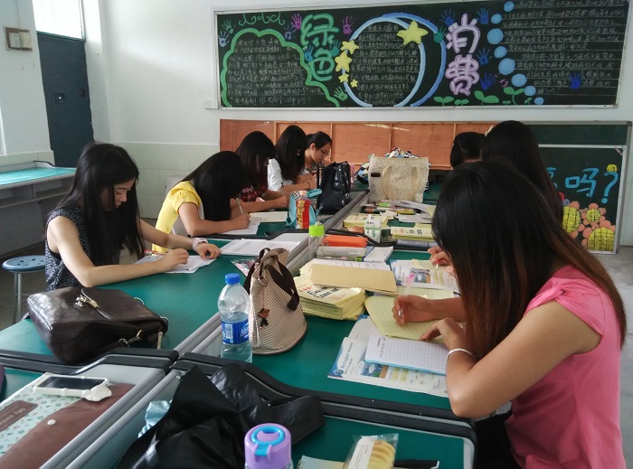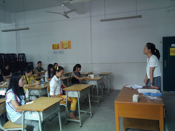 桂林十六中:2011级英语专业同学和实习带队老师杨晓敏老师一行20人来到桂林市第十六中学开始实习工作。在受到了十六中朱校长和张副校长的热情接待之后,英语组组长尹老师简单介绍了十六中的英语教学情况,并提出一些基本要求,也对实习生们给予了厚望。接着,杨老师布置了本周的相关工作,两位老师共同带领实习生与任课老师、班主任见面,19名同学分别将到10个班级(包括初一、初二年级)开展实习工作。校方专门提供了一间教室供实习生进行办公。从本周开始,实习生们将在各班指导老师的带领下,将进行为期一个多月的听课、上课、代理班主任等工作。