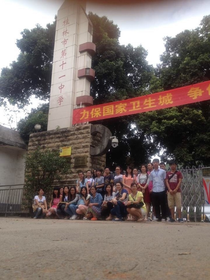 桂林十一中:由秦一涵老师带队的2011级英语专业的40名同学开始了在桂林市第十一中学的实习。十一中教务处的申主任代表校方对实习生们的到来表示了热烈的欢迎,并对他们提出了一些纪律和要求。40名学生将分别在十一中的初一、初二两个年级的16个班级展开为期一个多月的实习实践。