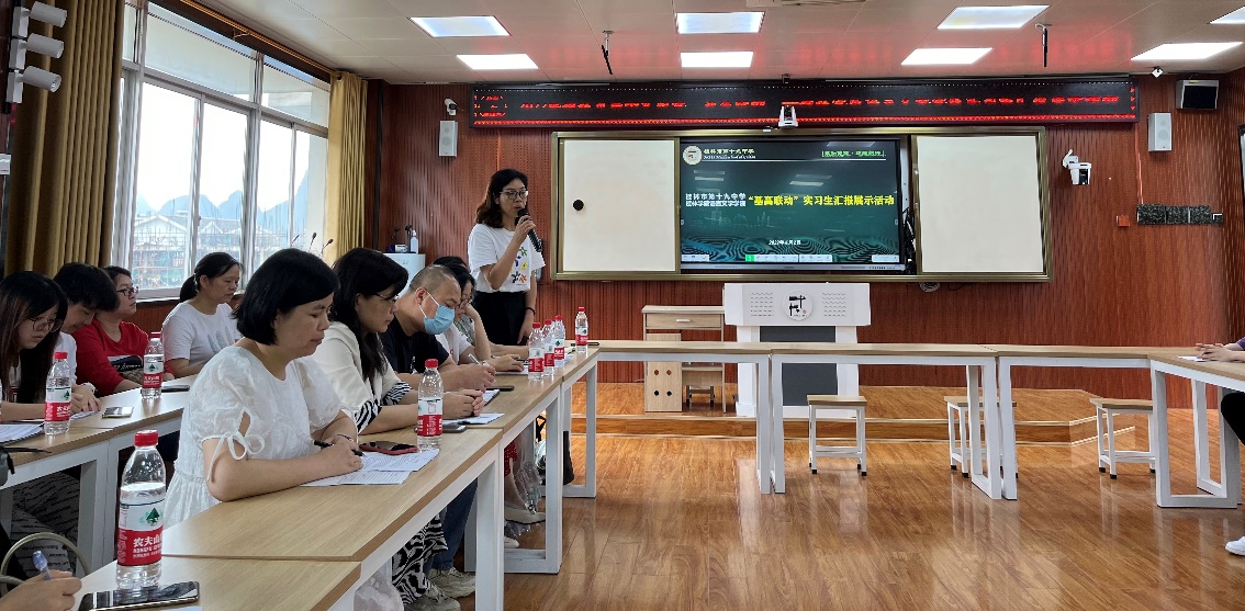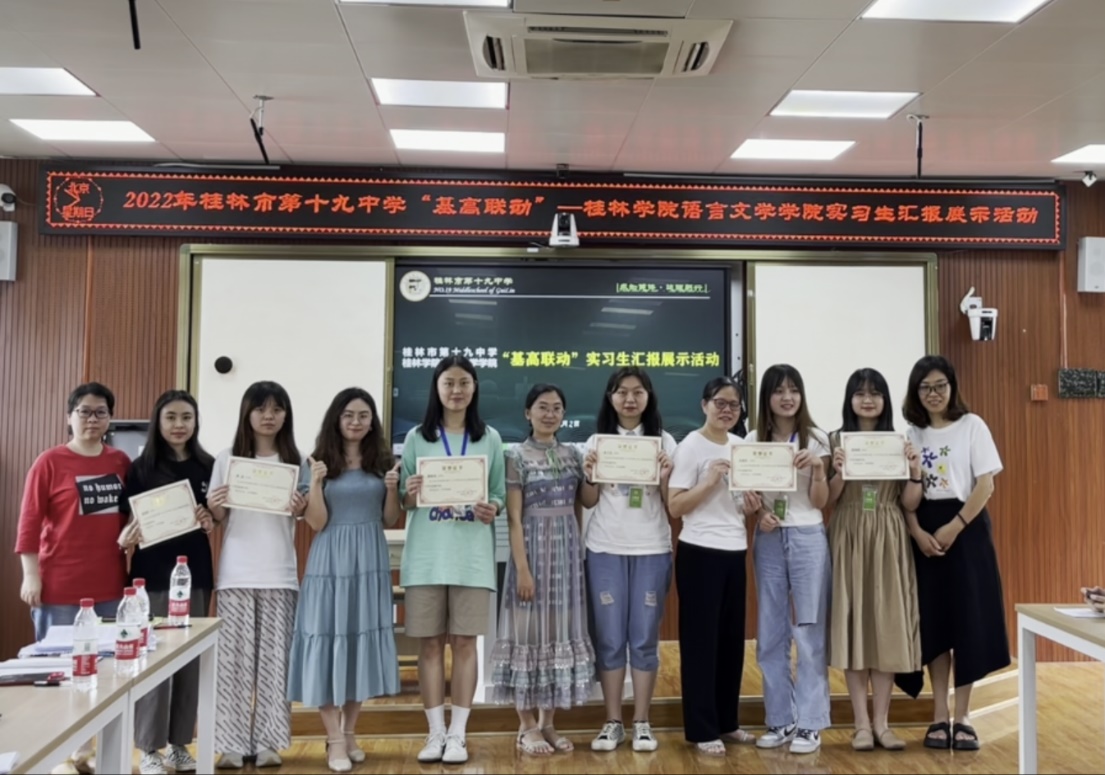 为了进一步推动核心素养背景下实习生英语教学能力的提升和教学技能的不断进步,展示不同的设计思路,展示自身教学风格,进行思想的碰撞,已达到共同进步,共同提高的目的,2022年6月2日上午8点30分,在桂林市第十九中学举行实习生同课异构汇报展示活动。桂林市第十九中学程晓玲副校长、科研处林芸主任、英语组教师、青年教师,我校合作发展处陆巧华副处长、英语文化教研室主任黄彦立老师、蒋玲利老师、胡坤林老师、英语基础教研室主任蔡晓明老师、英语教师教育教研室主任罗桂温老师、唐让操老师、陆海峡老师共同参加了本次汇报展示活动。本次展示活动的内容包括:两节同课异构的高一英语必修三M3 The world of science阅读课、初二英语下册Module 9 Friendship Unit1 Could I ask if you’ve mentioned this to her听说课和课堂评课交流活动。