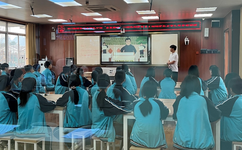 高中同课异构由桂林市第十九中学黄慧雯老师和实习生张羿同学在录播室分别执教。黄慧雯老师的课堂教学分为两部分,前20分钟结合前置作业和课前预读活动完成教材文本的阅读;后20分钟学生展示,以小组为单位借助课前完成的发明设计图讲解设计,并回答其他同学提出的问题。黄老师的整个教学体现了“以生为本,数字赋能”的教学理念,突出了对学生语言表达能力的锻炼,关注学生后续发展。实习生张羿同学围绕课文主题,以视频的形式点燃学生的激情,教学在丰富多样的活动中有条不絮的层层递进,课堂内容充实,并针对主题进行了探究。初中实习展示课由实习生王洁宇同学执教,课堂主题分明,重难点突出,课堂用语简洁明了,指令清晰,循循善诱,课堂活动以学生为主,课堂氛围活跃。