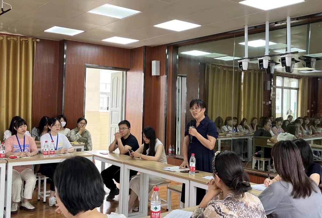 展示活动后,三位执教老师分别从教材分析、教学设计意图、教学活动实施及课堂教学情况作了自评。参加本次活动的桂林市第十九中学的年级组长董春霞老师和白瑾老师对三位教师的教学进行了点评,认为三位老师为大家呈现了三节非常精彩的全英英语课堂教学,且各有千秋,各具特色。黄慧雯老师专业知识扎实,经验丰富,整个教学体现了生本课堂特色。两位实习生的教学设计完整,重难点突出,尤其是活动情境的设置非常成功,调动了学生的积极性。同时两位老师也指出,在课堂教学中应适当留白,给予学生思考的空间,并应关注课后的辅导。我院罗桂温老师和蔡晓明老师表示,三位老师的授课思路清晰,为我们呈现了风格迥异却各有亮点的课堂,且三节课都突出了核心素养下对学生思维品质的培养。