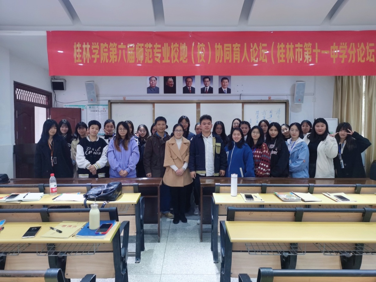 为了感谢和纪念桂林市第十一中学的领导和老师们对我院实习工作的大力支持,完善实习工作的机制,推进校地教育教学合作的良性发展,李丽群老师还代表我院给该校颁发了锦旗。