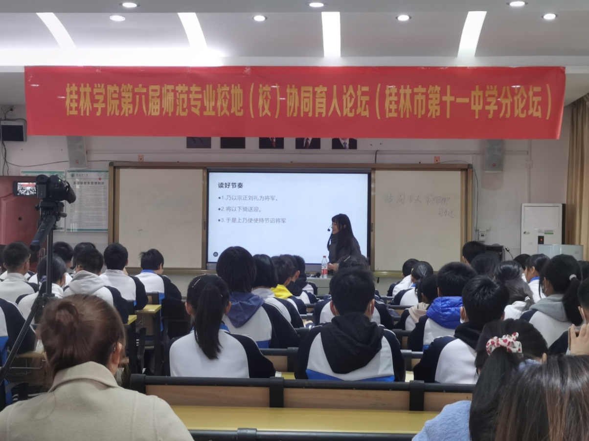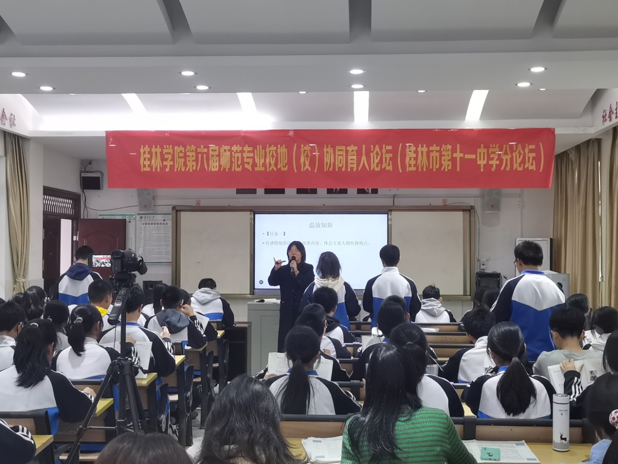 为了检验语言文学学院2018级汉语言文学专业学生教育教学实习工作的阶段性效果,推进我院与实习基地学校之间的教学交流互动,完善实习制度,提高实习质量,11月29日下午,语言文学学院与实习学校桂林市第十一中学共同举行了同课异构教研活动。我院李丽群副教授、杨力叶老师、桂林市第十一中学教务处副主任梁华、全体语文教师和语文实习老师出席参加了本次活动。