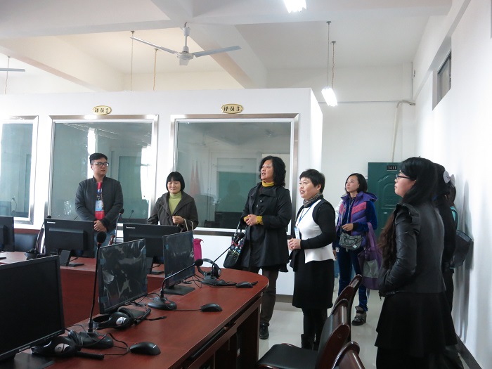 行健文理学院老师一行参观了我系的同声传译室与商务英语校企实训室。双方就专业设置,人才培养方案,课程设置等方面进行深入的探讨。对于独立学院转型时期如何求发展,走特色的问题上,何玲主任以商英专业“3.5+0.5”人才培养模式为例,灵活运用自身条件,突出错位发展的优势。总结了我系“结合桂北区域特色,强化专业实践能力,提升国际化办学的实效,加强校企、校地合作,培养服务地方的应用型人才的经验做法。行健文理学院外国语学部的老师们肯定了我系取得的令人瞩目的成绩,我系清晰的人才培养方案和办学定位对他们的发展起着很好的借鉴作用,希望以后两个单位之间能够继续加强交流,在未来的发展中迸发出更加灿烂的火花。