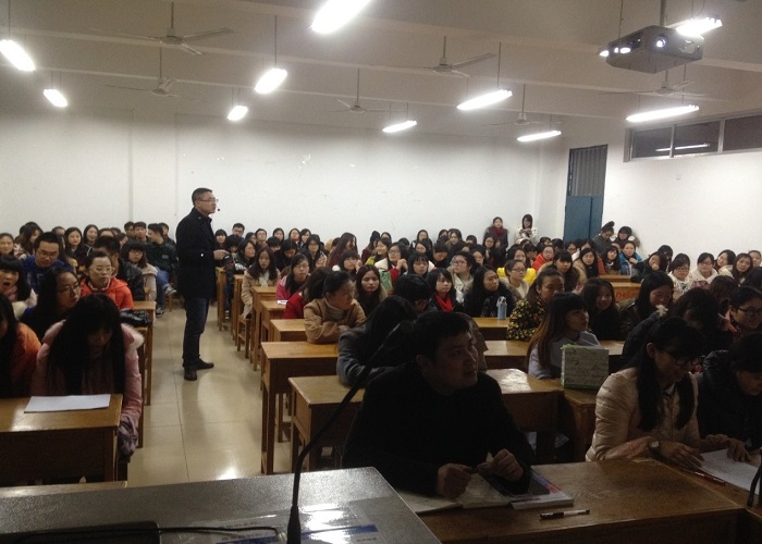 2014年12月12日晚,外语系在1503教室召开2015届毕业生实习总结大会。会议由年级辅导员李张燕主持,外语系副主任肖立章,各实习指导老师及2015届全体毕业生参加了总结大会。