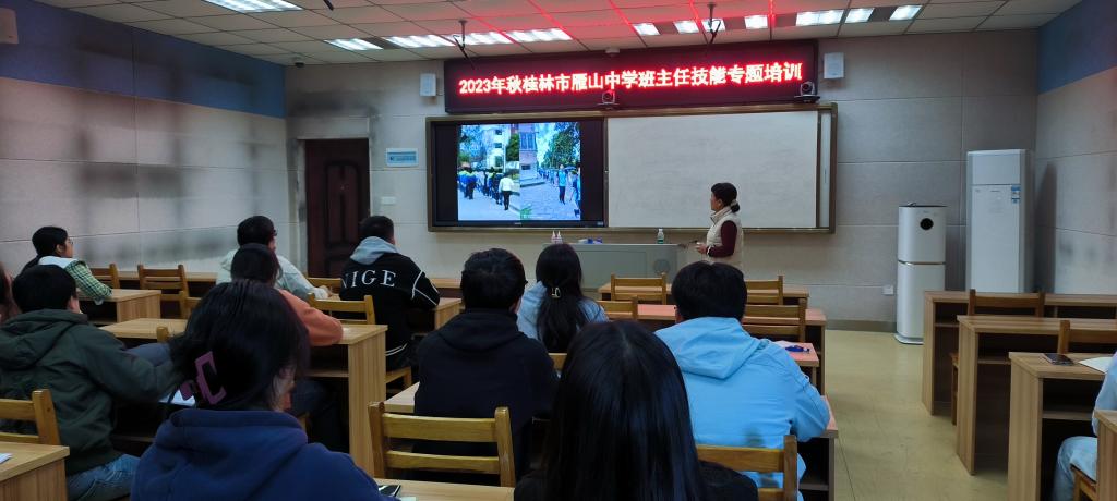 11月20日至21日,雁山中学选派优秀班主任雷丽娜、申聪琳两位老师为学院实习生开展了以“逐梦新时代,青春更精彩”为主题的班主任工作技能专题培训。
