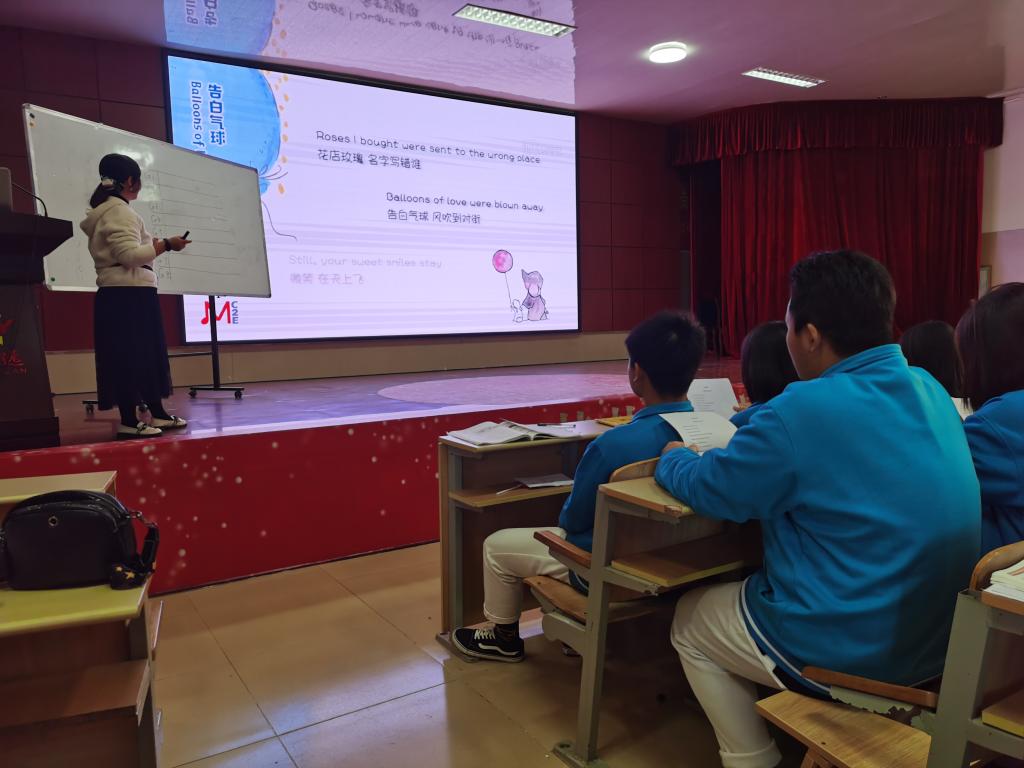 课程结束后,实习生马强芳同学和张源老师分别阐述了课堂设计理念,并对本次授课进行了反思和总结。接着,任远中学高中部兰佳蔚老师和范明老师对两堂课进行了点评,指出了两位老师的优点和不足之处。随后,实习生代表和2019级英语专业学生也依次进行了评课和提问。最后,桂林学院陆海峡老师和任远中学教研处粟月主任进行了发言和总结。