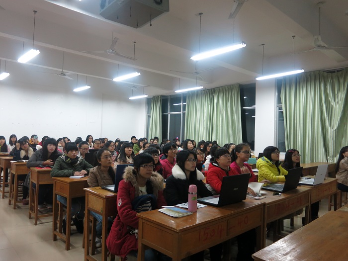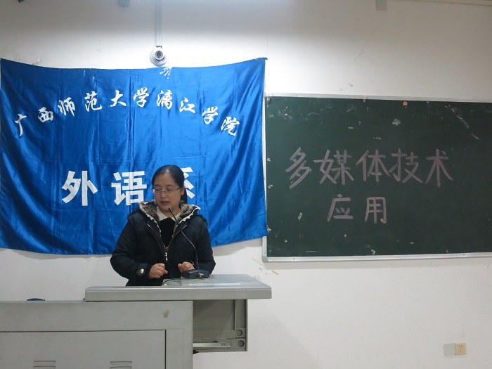 12月3日晚,外语系团总支学生会于1504教室举行了多媒体技术应用的干部培训活动,外语系团总支学生会全体干部,学生党支部、各年级专业学生干部代表参加了此次会议。此次讲座邀请外语系青年骨干教师汪婧老师主讲。汪靖担任着英语专业的听说课程,主要负责的两个项目在2014年全国多媒体课件大赛和广西教育技术大赛中均荣获二等奖,教育应用技术突出,表现手法灵活,有着丰富的多媒体教育教学实战经验。