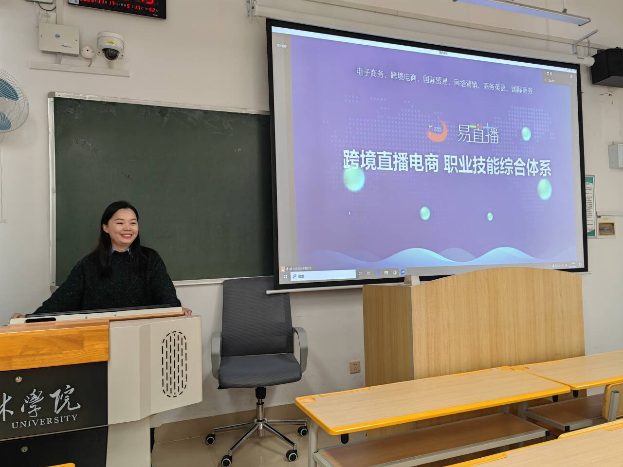 为了促进课程建设多样化,加快创新商务英语人才培养模式,迎合当前国际贸易发展大势,近日,人文学院商务英语教研室在至善楼2408教室组织了一场跨境电商直播师资培训,邀请跨境电商行业专家福建大娱号信息科技股份有限公司的业务经理梁艳珍开展讲座。