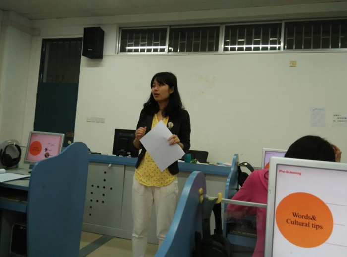 5月9日,大学外语第二教研室在2402语音室举行了教学公开课活动。本次公开课主讲教师蒋瑛面向2015级汉语言B3班 的同学,讲授了《新视野视听说》Unit 10 Have a nice holiday的内容。
