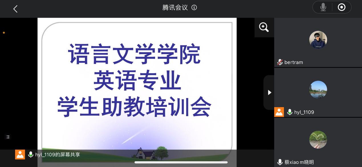 为加强学院教风和学风建设,加强课堂学习的过程管理,促进教学质量与人才培养的提升,提高我院英语专业学生的专业知识水平和实践能力,6月29日,语言文学学院黄彦立副教授给全体21级学生助教及相关任课老师做了主题为“如何做好英语学科助教”的在线培训讲座。