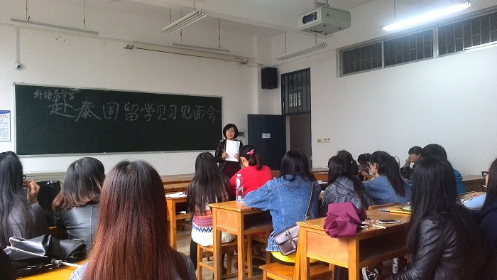 在沟通会上,国际交流中心的负责教师对赴泰要注意的具体事宜进行了说明,强调了安全注意事项。同学们就在泰国的学习、生活等疑问向老师进行了咨询,项目负责老师一一作了解答。