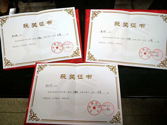 2016年4月15日到16日,我院外语系3名学生由翻译专业教研室主任熊惠琴等带队赴广西大学参加第五届全国口译大赛广西区复赛,喜获优秀奖。参赛选手为2013级翻译专业和英语专业学生:凌志行、黄夕君及梁月明。外语系翻译教研室教师团队分别于2016年3月23日及3月30日在校内展开了此次口译大赛的初试和复试;并在2016年3月至4月间为参赛选手提供赛前指导培训。 此次广西区复赛仅有广西大学行健文理学院及广西师范大学漓江学院两所独立学院参加。通过此次大赛,选手们了解了自身优势,更看到了与其他院校口译高手间的差距,激发了口译学习的兴趣和信心,希望外语系以后能有更多学生踊跃参与各种口笔译实践及赛事,提高语言应用能力,增强就业竞争力。