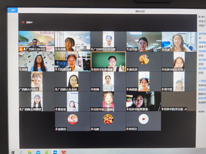 5月13日晚上八点,桂林学院与广西师范大学汉语国际教育专业师生开展了关于“泰国宋卡德教树强学校实习合作”线上交流培训会。由于疫情的影响实习学生无法出国实习,两校专业负责人根据实际情况,积极和国外合作学校联系,创新实习方式,尝试线上汉语国际教育实习新模式,这是我校第三次尝试线上汉语国际教育跨国实习。广西师范大学国际处副处长孙中会老师主持了本次会议,与会人员有广西师范大学相关老师和学生及桂林学院2019级汉语国际教育专业相关老师和学生。