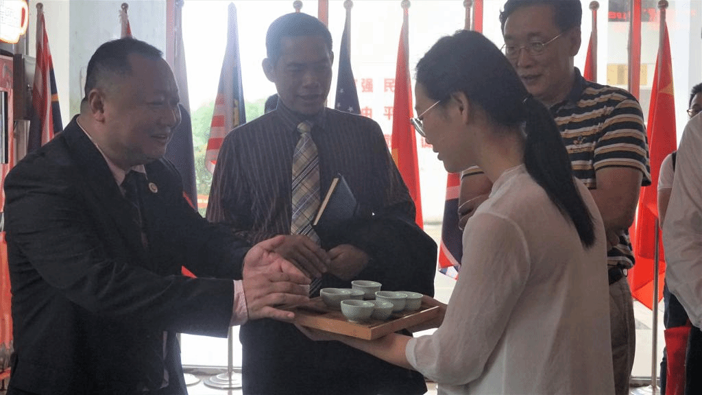 行云如流水,落笔如云烟。代表团先是观看了语言文学学院半步斋书画社社员现场演示的书法,这有利于传播和发扬我国传统书画文化,更好弘扬我校至善文化。接下来代表团观看了茗新茶艺协会带来的茶艺展示,让泰国代表团了解了茶的健康品饮文化和国饮历史文化。最后代表团一同参观了我校的教学区、整洁优美的校园环境、给代表团们留下深刻的印象。