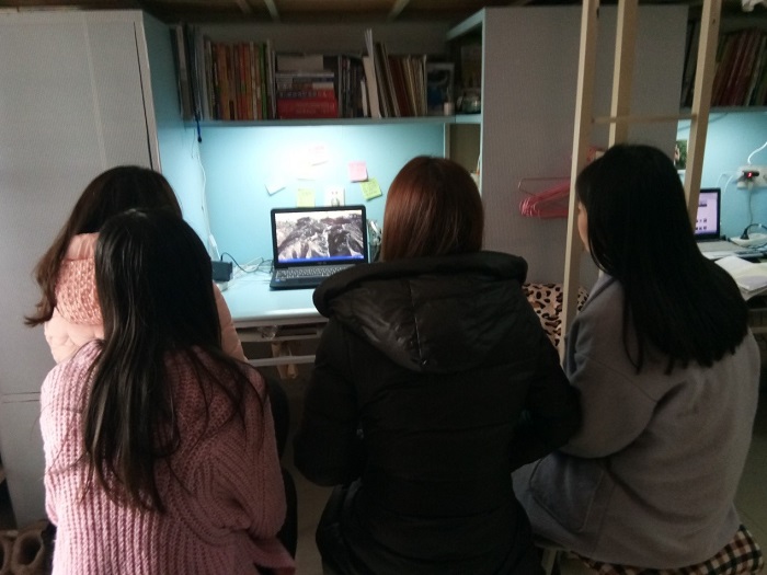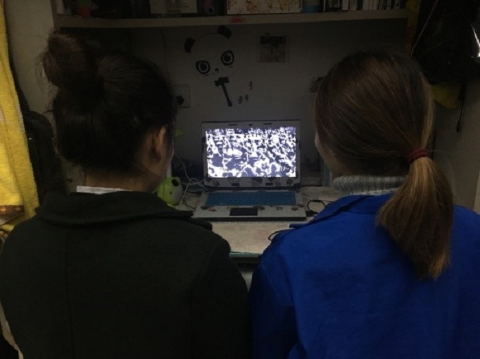 外语系2014级204宿舍成员津津有味观看《长征》纪录片,