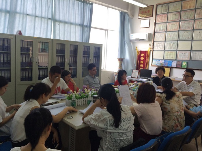 外语系积极响应学院专业转型发展的号召,这学期把专业转型发展作为系重要工作来推进。这学期教研室工作理念是:转型发展深入到每个教研室,落实到每门课程,向每节课要效果。9月26日上午,外语系全体教研室主任、团学负责人、秘书、系班子成员在系档案室深入研讨落实转型发展工作。会议开始,由教师代表对近期教学相关工作进行了具体的汇报。陆巧华老师就2013级学生实习工作进行了反馈,列举了学生在实习过程中存在的问题以及下一步推进措施。黄文敏老师就大学英语第一教研室课程与师资安排进行了汇报。苏苑老师就2016级外国语言文学类分班等教学工作进行了讲解。随后,外语系副主任张超锋老师对2016级人才培养方案制定以及如何通过人才培养方案的制定把转型发展落到实处进行阐述。接着,外语系党总支书记陈俊杰老师带领大家对中国共产党员问责条例进行了学习解读,并提醒教工党员在教学工作中应认真贯彻两学一做精神。