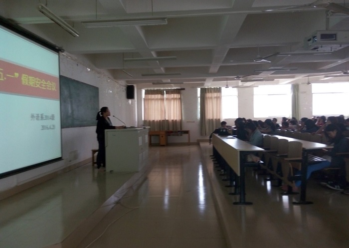 根据漓江学院学工文件要求,结合本系学生实际情况,以加强学生节假日期间安全出行为目的,2014级外语系全体师生于2016年4月28日下午五点在001大教室召开了有关“五一”假期安全会议,会议由2014级年级辅导员周俊巧主持。