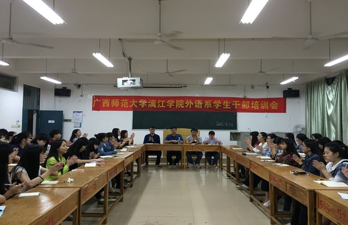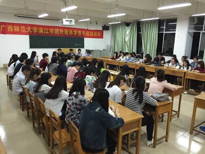 作为一名优秀的学生干部,应具备良好的组织管理能力、团队合作能力、社交能力和创新能力。为增强学生干部的全局意识、服务意识、责任意识、效率意识、创新意识,加强学生干部队伍的凝聚力、战斗力,提高学生干部的整体素质。漓江学院外语系2015级英语专业年级特举办了一系列学生干部培训专题活动加强对干部的教育、培养和管理,以此促进学生干部适应新环境、接受新挑战和自主解决问题的综合能力,从而更好地服务于同学。