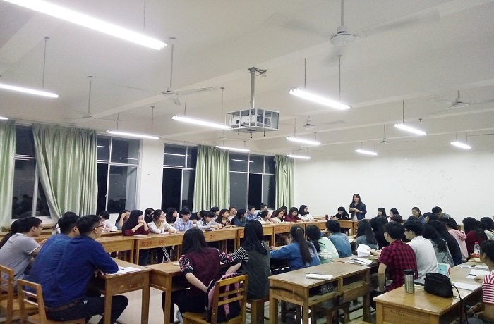 2016年4月14日晚,外语系2015级英语专业的全体年级干,团干,班干一共68人在1502教室参加 了第一场关于“培养创新意识,提高工作能力”专题培训活动。本次培训非常荣幸的邀请到了广西师范大学漓江学校团委书记、学工处副处长戈铁生老师。戈老师长期奋战在学生管理工作的第一线,带出了很多优秀的学生干部,他首先用自己的亲身经验给我们介绍了作为一名合格的学生部应具备怎样的素质,并详细解答了干部们工作中出现的疑问,整个过程严肃认真但又轻松活跃。通过戈老师的讲解指导,干部们收获颇丰,同时也发现了自身的问题和差距。大家表示今后会更加努力增强合作意识,提高自身的工作能力,成为一名优秀的学生干部。