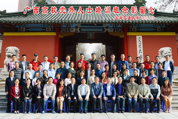 由广西高校工委统战部组织的“广西高校党外人士培训班”于4月18日至22日在上海交通大学继续教育学院举行。我院九三学社社员何玲老师参加本次培训。来自上海交通大学、复旦大学、南京大学等知名教授为来自广西高校56名学员授课,一周的课程安排,内容丰富、形式多样、紧扣时代信息,让所有学员受益匪浅。