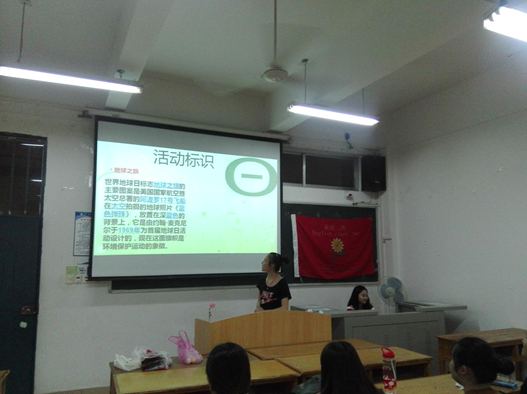 2016年4月21日晚,2015级英语2班全体同学于1202教室召开主题为“关爱地球,爱护校园”的主题班会。为了让同学们多了解地球日的理论知识,学习委员兼主持人刘芷含首先通过PPT介绍了有关地球日的小知识,接着还观看了有关地球日的新闻视频以及知识竞答环节,同学们都积极参与,气氛十分高涨。通过这次班会,同学们更深入的了解地球日,达到增强学生的环境保护意识,关心地球现状.树立正确的科学发展观,共建和谐社会的目的。同时,主持人也总结希望同学们能从身边的点滴做起,尽己所能为环境保护做主贡献。