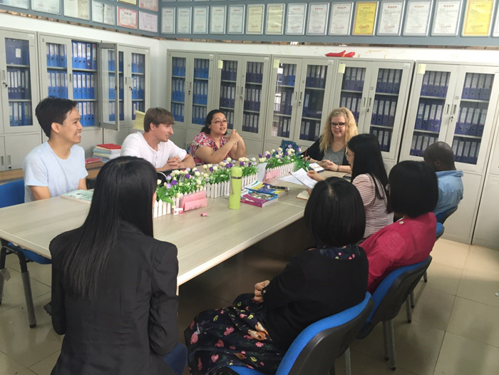 座谈中,教研室黄文敏、蒋玲利、杨晓敏、蔡晓明等老师与外教Julius, Gina, Cris, Kara以及泰国外教蔡鹏宇纷纷畅所欲言,围绕学院学生的英语语言学习习惯、学习风格、教学进度、课堂教学组织、教学设计、课后练习等进行了有效的探讨,并对接下来的教学活动进行了交流。
