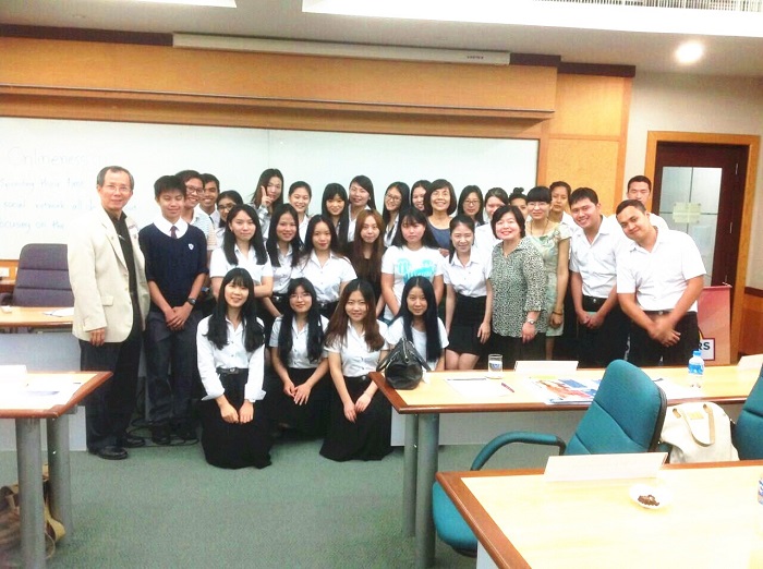 近日,外语系赴泰国开展境外实习的2013级商务英语专业的师生们参加了泰国商会大学TOASTMASTERS CLUB在5503教室举行的主题演讲活动。出席本次活动的嘉宾有TOASTMASTERS CLUB主席Ink,以及俱乐部的主管老师和同学们。
