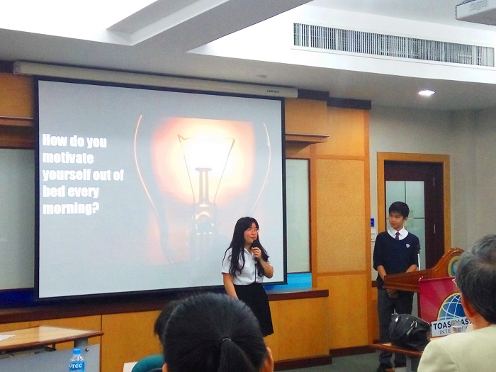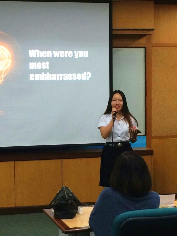 活动初始,由TOASTMASTERS CLUB主席Ink致开幕词,欢迎2013商务英的同学们到泰国商会大学学习,对这波活泼的中国学生们参加俱乐部的活动表示热烈欢迎。 TOASTMASTERS CLUB的主管老师及学生依次发言,到场的所有同学依次自我介绍。同学们个性鲜明的自我介绍方式让大家很快的进入了状态。接着由TOASTMASTERS CLUB的成员Crystal发表了“Smartphone Addiction”为主题的演讲。智能手机已经成为我们身体的一部分,无时无刻我们都握着它,甚至忽略了我们身边的亲人,朋友。手机真的比他们还要重要吗?这的确是值得所有人深思的一个大问题。活动中最火热的环节是Table Topics!年仅13岁的Ron,用其流利,纯正的英语主持着此活动顺利进行。我院商英专业的同学们受到她的感染,也非常积极的上台发言。
