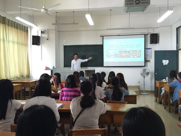 为了让2015级泰语专业的新生尽快了解泰语专业的培养目标、专业特色及培养要求,外语系泰语教研室主任姚垚于2015年10月25日在1206教室为泰语专业的新生进行了一场主题为“扬帆启航,开启‘泰’美妙的旅程”的专业认知讲座。