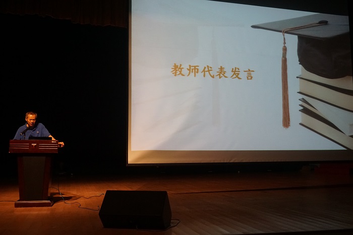 紧接着进入本次会面的重头戏,各教研室教师团队纷纷登台亮相。领导老师们面对新生依次自我介绍,并对新生送上暖暖的寄语。未来四年的相处在这一刻正式开始,台下新生为老师们的展示报以热烈的掌声。最后,系党总支书记陈俊杰对新生发表了以安全教育为主题的讲话。他从校园安全、用水用电、防骗防盗、交通安全四个方面,通过列举身边的鲜活的实例,让新生清晰的了解到身边存在的安全隐患,使新生的自我保护能力和个人安全防范意识得到了明显的提升。
