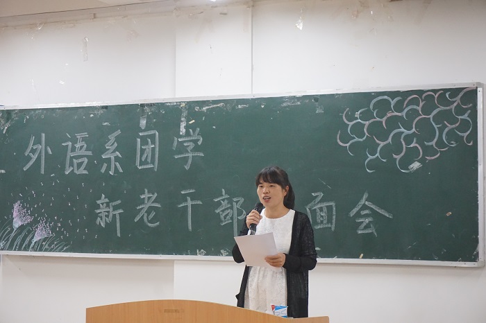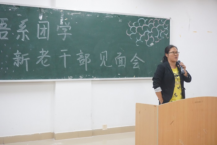 2015年10月9日下午,外语系在1207教室举行了外语系团学新老成员见面会。当天下午,我们有幸请到外语系团总支书记石仁春老师和团总支副书记周俊巧老师前来参加本次会议。