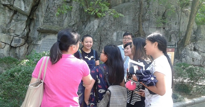 2015年10月8日上午,外语系翻译教研室教师谭敏、熊惠琴带领2013级翻译专业30名学生在王城景区开展联络口译及视译实践。