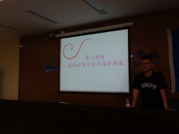 院团委书记戈铁胜老师为同学们讲解创新杯写作技巧
