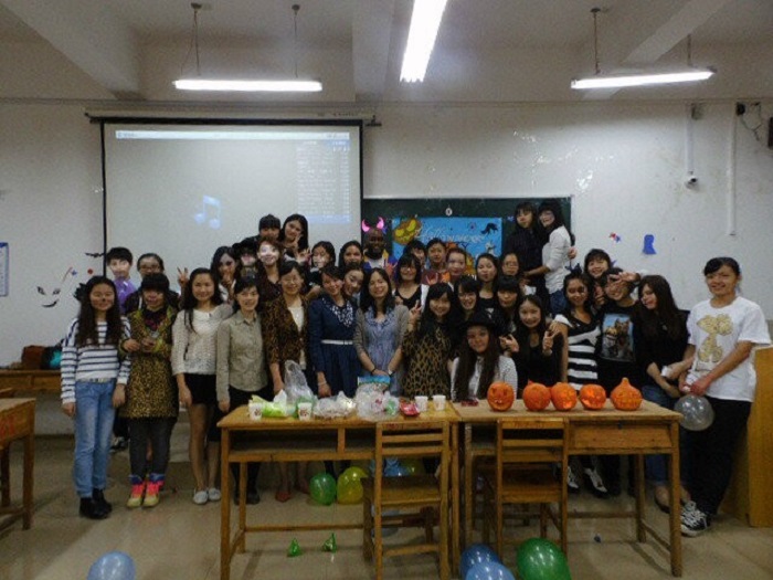 放眼国际,欢度西方“鬼节”——2013级翻译专业学生与中外教师共庆万圣节