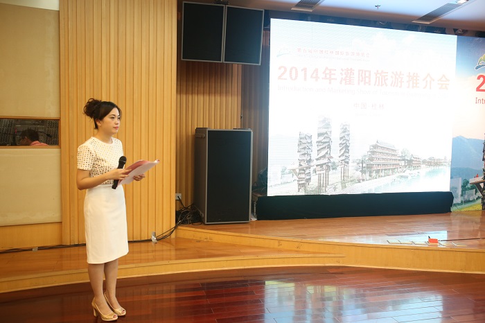 8月29日-31日,2014年第五届中国桂林国际旅游博览会在桂林国际会展中心举行。受大会组委会秘书处与灵川、灌阳两县旅游局委托,我院外语系专任教师杨晓敏负责承担本届桂林旅博会魅力县区旅游推荐会场的翻译工作。