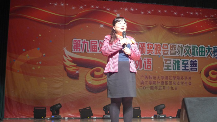 激情洋溢的开场舞拉开了晚会的帷幕。外语系主任蔡马兰为晚会致词。她充分肯定了本届外语文化月同学们的表现和成果,指出同学们通过表演外语话剧、诵读外文经典、展示异国风情等活动,提高了综合运用外语的能力,营造了校园浓郁的外语学习氛围,希望同学们将外语文化节的良好学习氛围和实践活动延续在今后的学习之中。