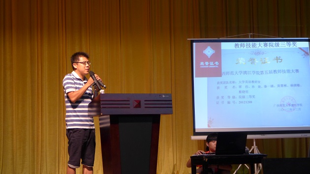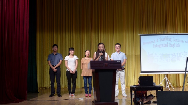 在领导讲话和致词后,见面会开始了教师自我介绍和展示教学风采的环节。该环节以教研室为单位,由教研室负责人上台介绍其教师团队,通过制作的PPT展示每位教师的教学、科研和育人成果。老师们借此机会纷纷给新同学们寄语,如:Energy and persistence conquer all things; Nothing seek ,noting find ,nothing is imposable 。老师们的教学风采和励志话语感染了全体新生,同学们不断报以热烈的掌声。