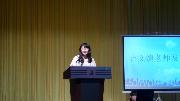 随后,教师和学生代表上台作了热情、生动的发言。吉文婕老师以其求留学经历给新生以启示:在求学的道路上总会遇到挫折,但我们要学会坚持,勇往直前!2011级优秀学生代表花成伟讲述了他由后进生蜕变为优秀学生的经历,以此激励新生奋勇争先。2013级新生代表朱小丽号召全体新同学铭记“向学、向善,自律、自强”的校训,以出色的表现和优异的成绩回报老师。