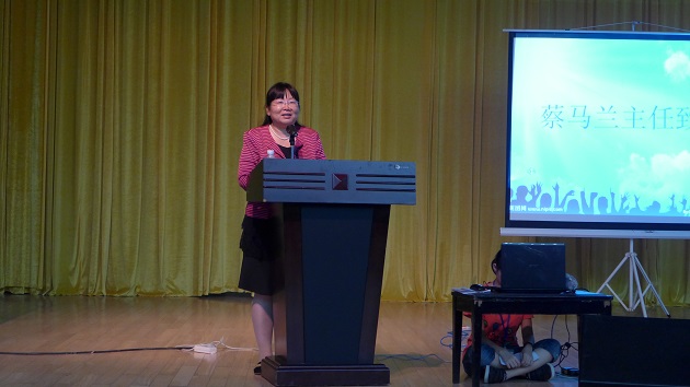 在正式会议之前,新生观看了展示外语系办学成果的视频,引起了他们高度的兴致。在见面会上,首先,全体师生起立奏唱国歌。接着,刘林海副院长作了热情洋溢的讲话。刘副院长在讲话中要求全体新生明确学习目标,养成良好的学习习惯,调整好心理,尽快适应大学生活。随后,外语系主任蔡马兰为见面会作了致词。蔡马兰主任介绍了外语系的办学历史、专业设置、师资队伍、人才培养特色等整体情况,并且对新生规划好大学学习生活、锻炼实践能力、提升就业竞争力提出了希望和要求。