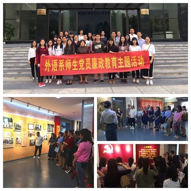为进一步加强党风廉政教育,提高党员干部拒腐防变的能力,激发爱岗敬业精神,并结合党的统一战线工作。4月4日,外语系党总支组织系领班子成员、九三学社代表和全体师生党员赴桂林市委党校党风廉政教育基地参观学习,