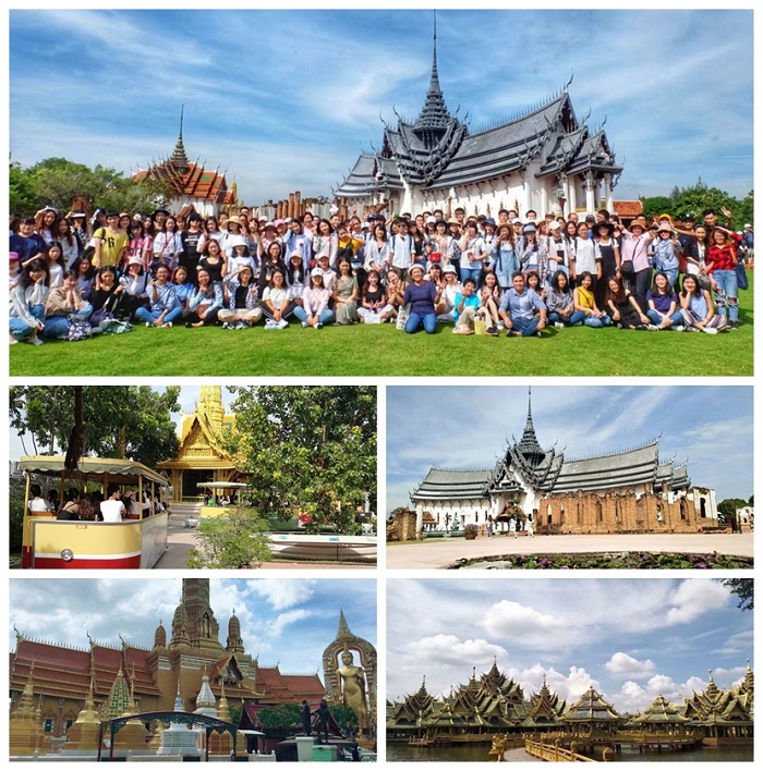 为深入学习泰国历史文化和人文艺术知识,提升泰国特色留学的体验值,泰国商会大学于近日组织广西师范大学漓江学院、文山学院、广西师院和相思湖学院等校的留学生到เมืองโบราณ(泰国沙莫巴干古城)参观游览。