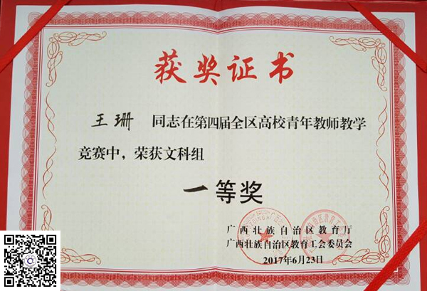 王珊获得第四届广西高校青年教师教学竞赛文科组第一名