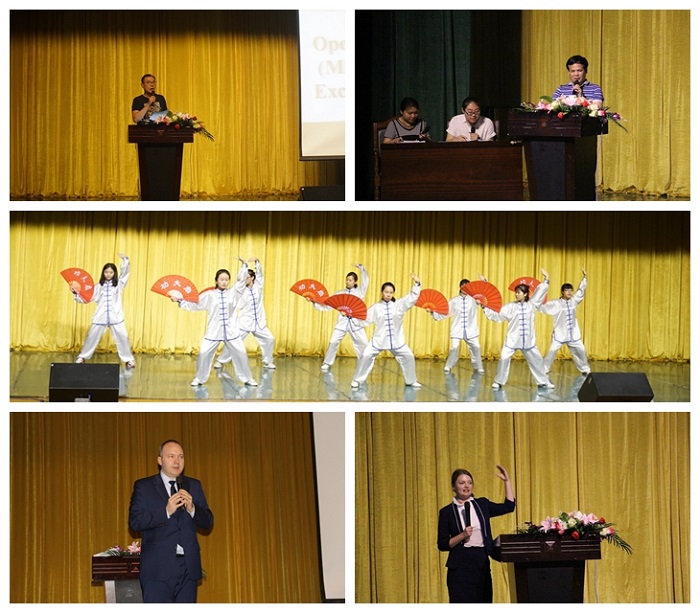 为促进中外文化交流,弘扬桂林传统文化,5月30日下午“中外文化交流与漓江文化国际传播”国际论坛于多功能报告厅顺利召开。本次论坛报告人有:来自波兰的波兹南密茨凯维奇大学Tomasz R. Szymczyński教授和Agnieszka Wójcicka教授,中文系主任王朝元教授,外语系教师周燕萍、黄文敏。外语系主任何玲、国际交流中心主任凌忠、外语系师生参加活动。本次论坛由外语系教师赵莉莉主持,现场交传由外语系15级学生郭贤文和冯程程担任。