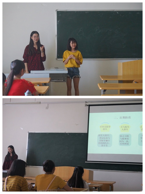 为了切实增强学生的安全意识和避险能力,保障学生的安全,外语系2016级英语教育1班举行了“爱你就像爱生命”为标题的安全教育主题班会,班会以热点新闻-5.6郑州空姐打车遇害案导入,结合学校安全教育为主题,对同学们进行安全教育,学习安全知识,让大家认识到安全的重要性。