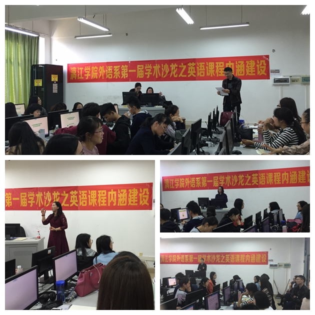 为进一步推动外语系教师的全面发展,促进英语课程教学的内涵建设,11月9日,外语系第一届学术沙龙之英语课程内涵建设在2304举行。本次沙龙特邀广西师范大学外国语学院副院长周小玲教授及其领导的优秀教学团队,为外语系全体教师奉献了一场探讨英语课程内涵建设的教学盛宴。