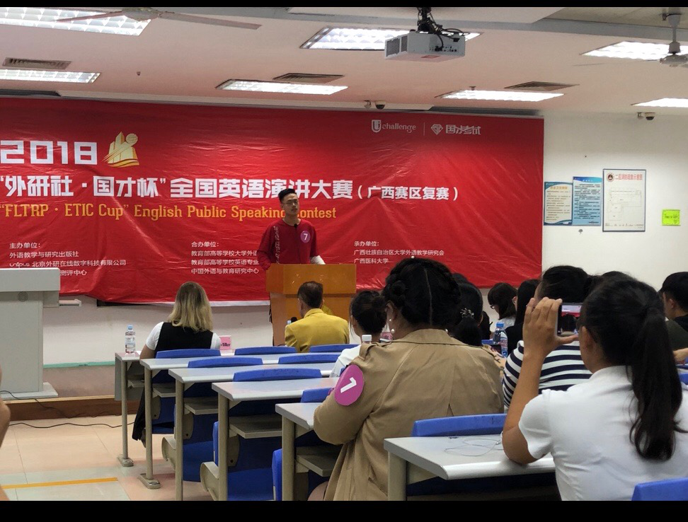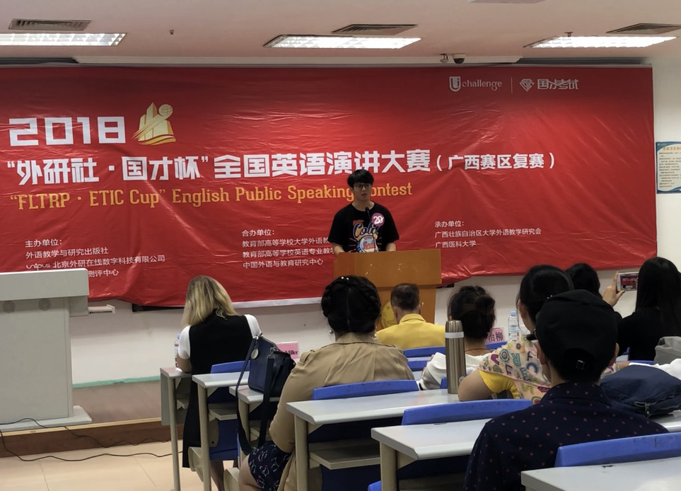 此次大赛由外语教学与研究出版社,教育部大学英语教学指导委员会,教育部英语专业教学指导委员会联合举办,本次广西区决赛分为即兴演讲(3分钟)和回答问题(2分钟)两个环节。即兴演讲环节主要考察选手文字处理能力、逻辑思辨能力、创新思维能力等,我校参赛选手均以流畅的表达、自信的风采、严谨的逻辑表达能力、优美的语言赢得了评委们一致的好评与赞扬。本次演讲比赛不仅有助于提高学生英语语言能力、欣赏语言美的能力;同时,在演讲场外的高校互动交流中,选手们也收获了满满的友谊。