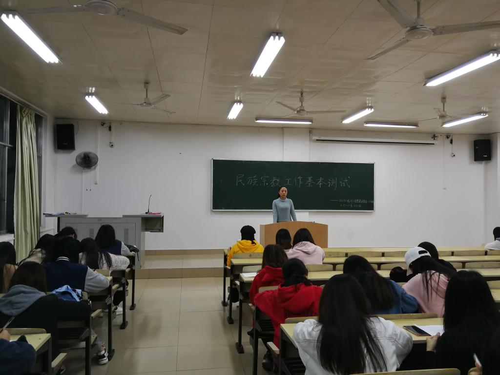 为进一步加强民族宗教工作知识学习,推进民族宗教工作再上新台阶,11月11日晚上,外语系举行民族宗教工作基本知识测试活动。外语系各年级近700名学生参加测试活动。