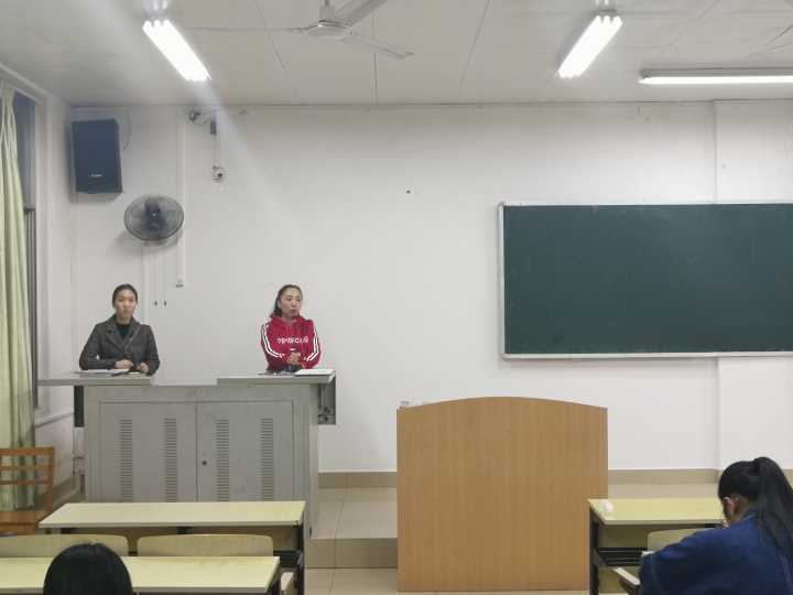 为迎接广西壮族自治区成立60周年,更好地营造校园安全环境,12月2日晚,外语系2016级英语类在1404教室召开“喜迎区庆,筑校园平安“主题会议,会议由辅导员韦微老师主持。